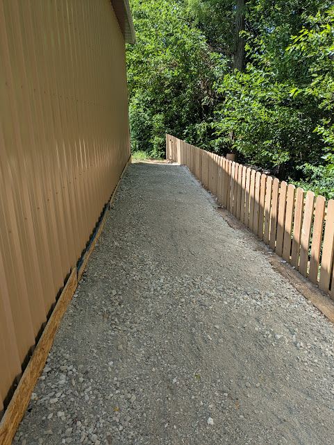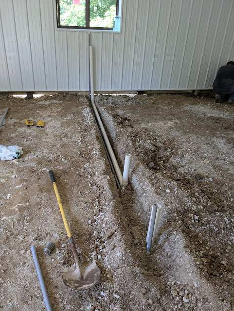I also took the opportunity to trench some tile lines to help with drainage. The building is at the end of a small slop and I know water flowed towards the building. Now the tile will take the water straight out over the hill into the timber.