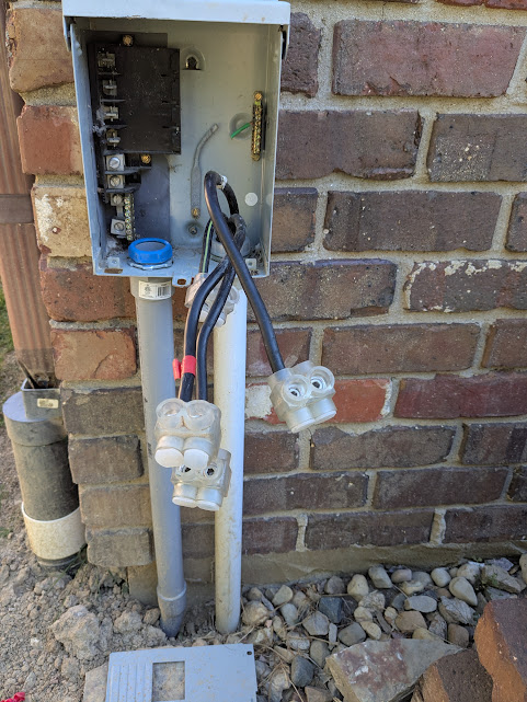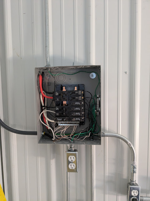 Once I had the conduit buried, I then made an informed decision. I can do basic household and shop wiring but running service and hooking it up correctly was right on the edge of my lane. At that point, I called a local electrician. I would have them decide what amp breaker to install in the house panel and they would have the correct gauge wire for connecting the corner box to the workshop. I had already purchased a sub-panel for the workshop so I thought they might as well do while they are there. That way when they left, everything would be done and working.